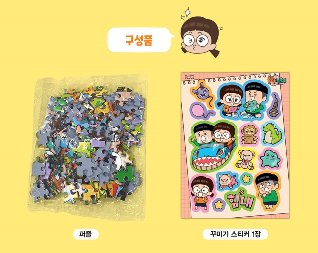 <흔한남매> 유튜브 인기 영상을 모티브로 제작한 디자인으로, 으뜸이와 에이미의 유쾌 발랄한 일상을 생생하게 담았습니다. 특별 부록으로 꾸밈 스티커 1장까지 함께 구성되어 있습니다. 퍼즐을 맞추고 스티커로 꾸며서 세상에서 하나뿐인 나만의 퍼즐로 만들어 보세요.